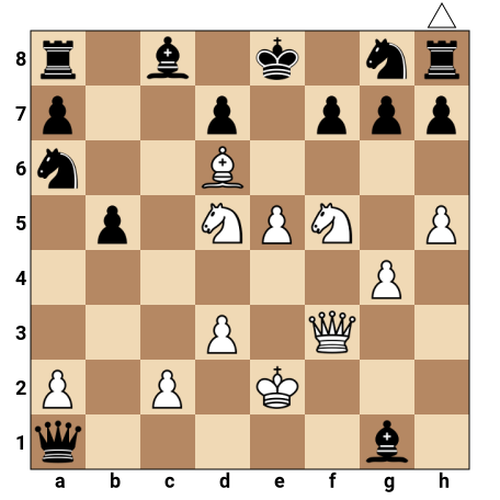 http://fen2png.com/?fen=r1b1k1nr/p2p1ppp/n2B4/1p1NPN1P/6P1/3P1Q2/P1P1K3/q5b1 w kq - -